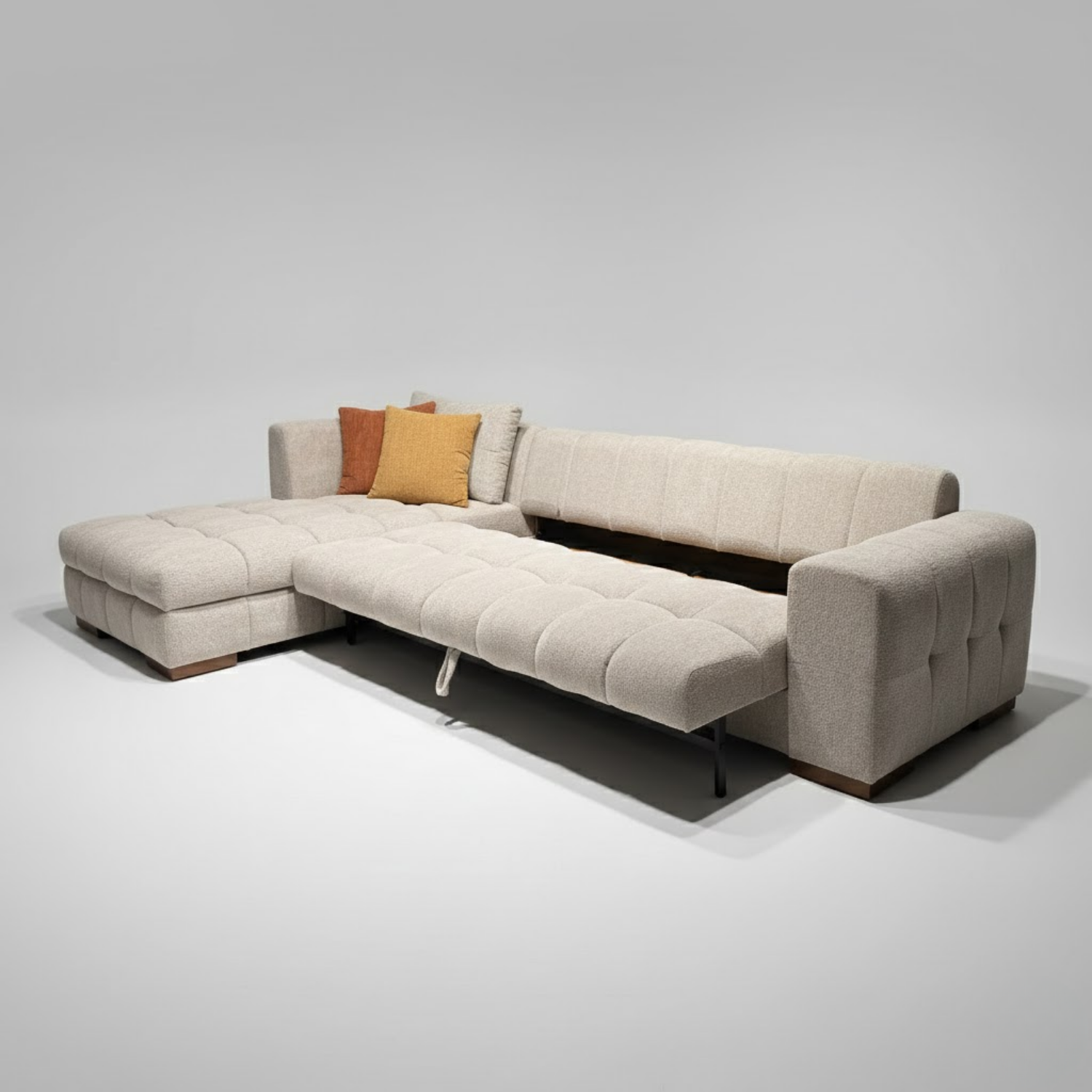 Hem şık tasarımı hem de çok yönlü kullanımıyla yataklı sandıklı köşe koltuk, evinizin en kullanışlı ve en çok tercih edilen parçası olmaya aday.