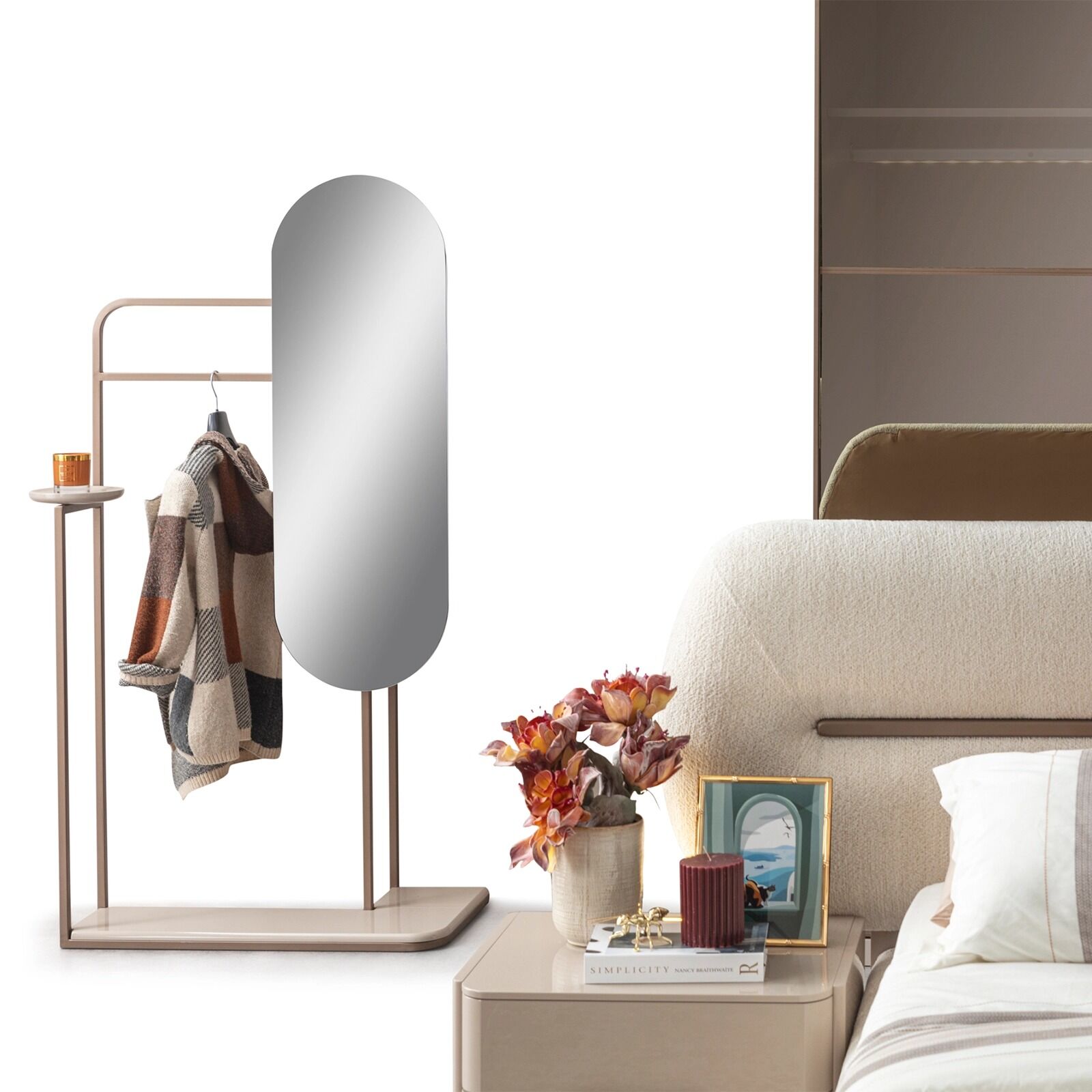 Elegan Ayaklı Ayna, modern yaşam alanlarınıza hem şıklık hem de fonksiyonellik katan bir tasarım harikasıdır.