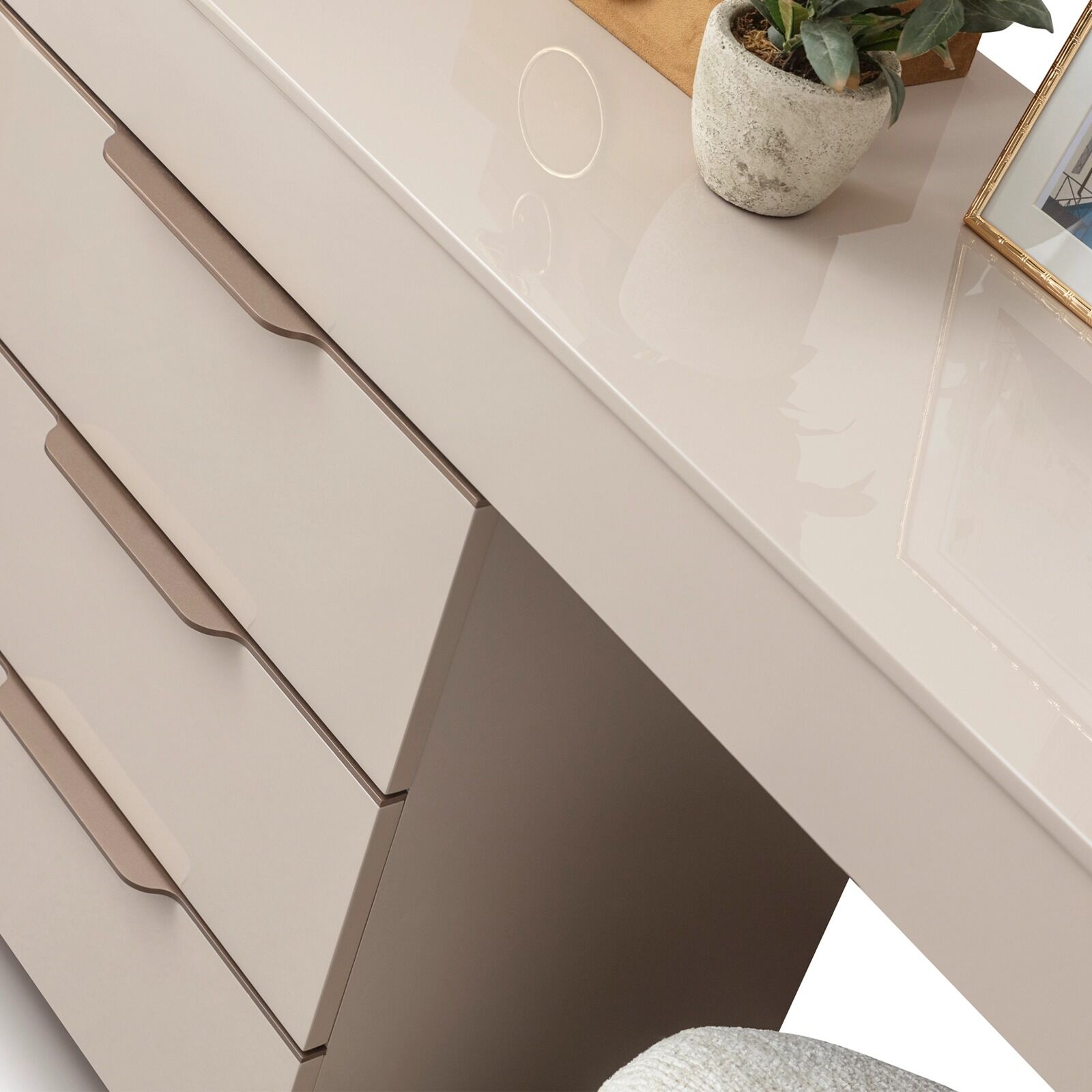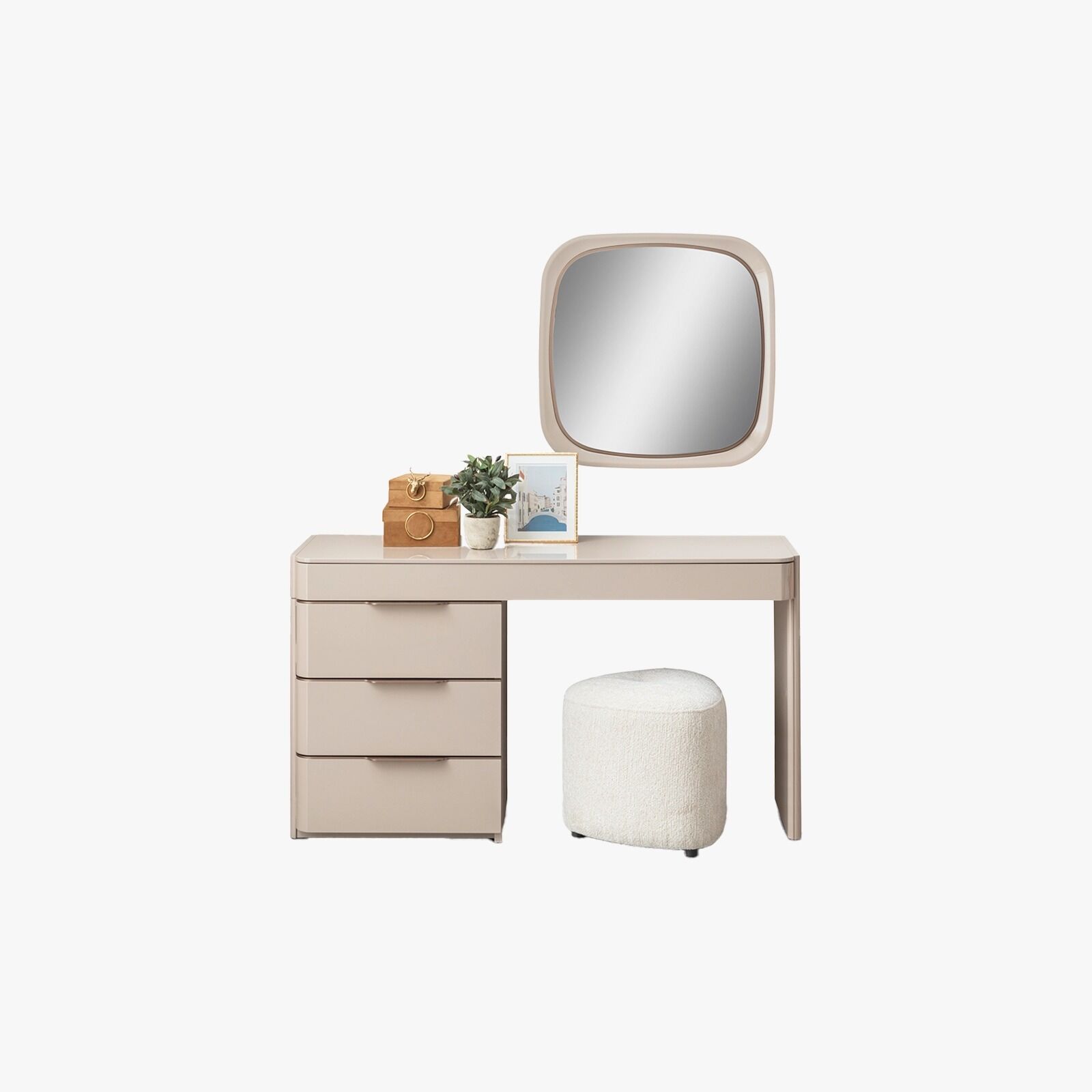 Modern tasarımı ve geniş yüzeyi, makyaj malzemelerinizi ve aksesuarlarınızı düzenli bir şekilde saklamanızı sağlar. Şık çekmeceleri ve rafları, hem estetik hem de pratik bir çözüm sunar.