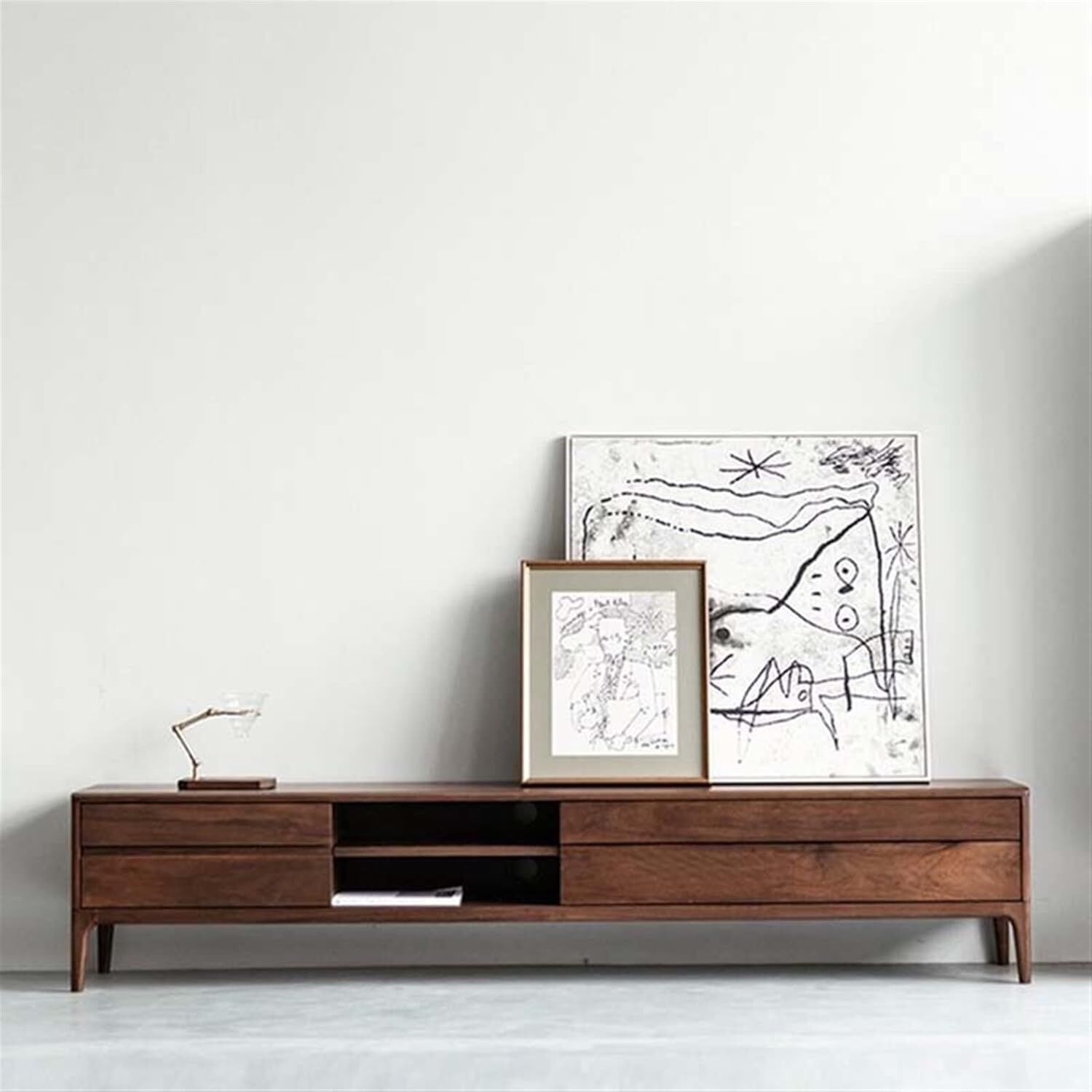 Dört geniş çekmecesi, kumandalar, kablolar ve günlük yaşamda göz önünde olmasını istemediğiniz tüm eşyalar için düzenli bir depolama alanı sunar. Orta bölümde yer alan açık raf ise resever, medya oynatıcı veya oyun konsolu gibi cihazlar için özel olarak tasarlanmıştır. Bu alan, hem cihazlarınızın rahatça konumlanmasını sağlar hem de kablo karmaşasını minimuma indirir.