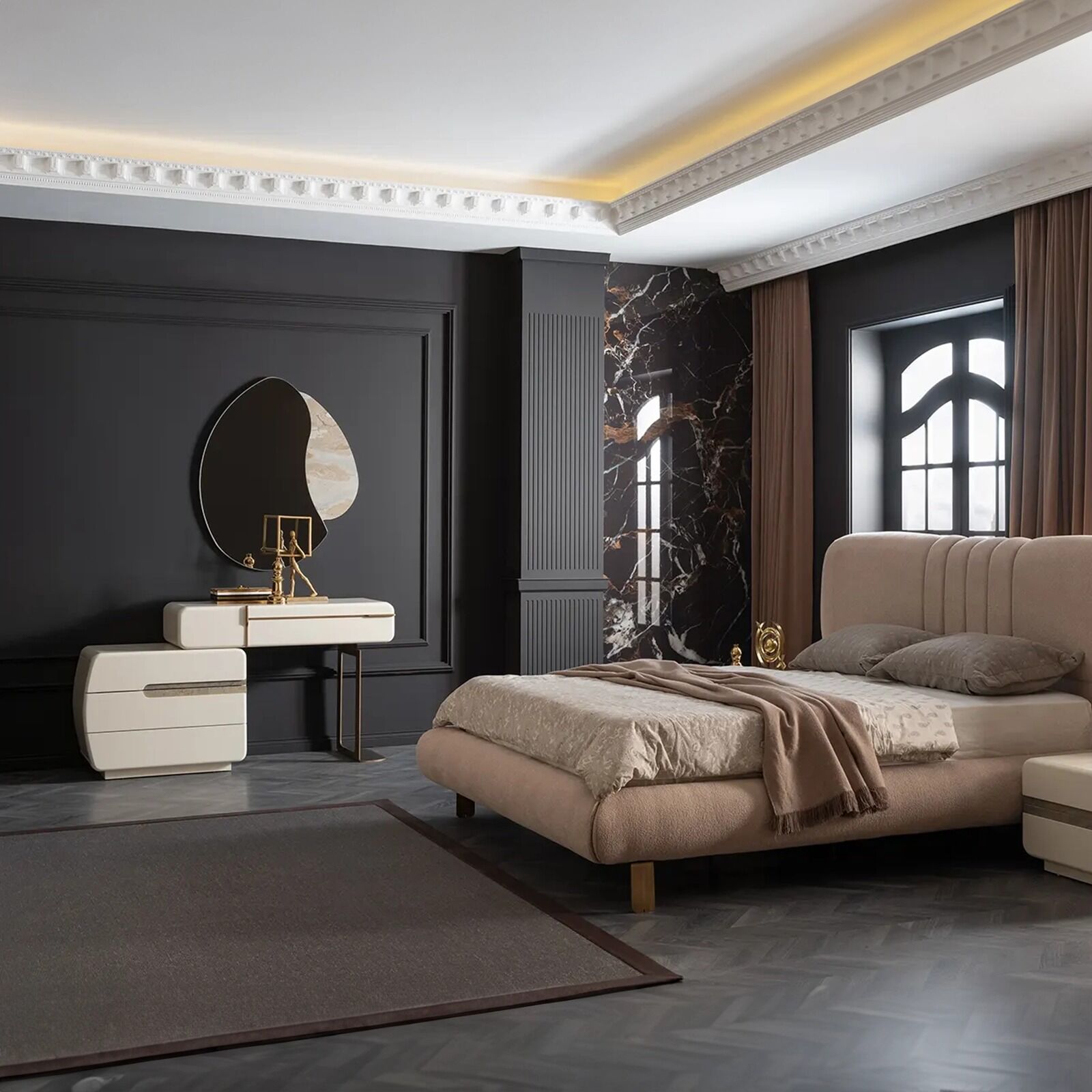 Şifonyer, yatak odasının düzenini sağlamanın yanı sıra estetik bir unsurdur.