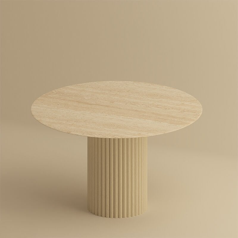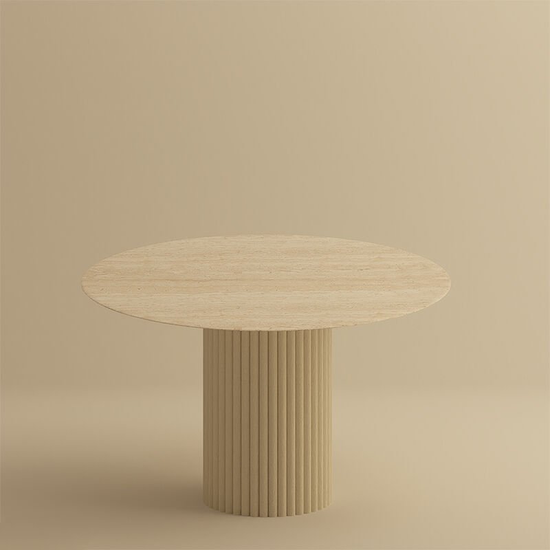 Yuvarlak Traverten Taş Line Masa